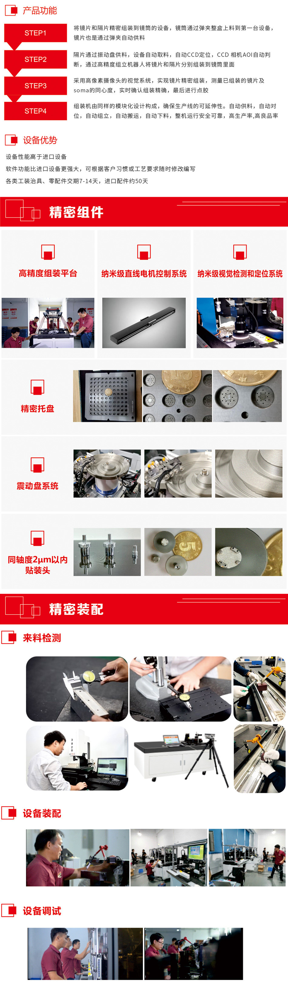 ● 操作簡單, 功能強大,具備最高端手機鏡頭組裝能力。